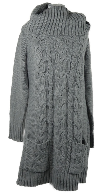 Dámské šedé vzorované svetrové šaty s komínovým límcem Bonprix