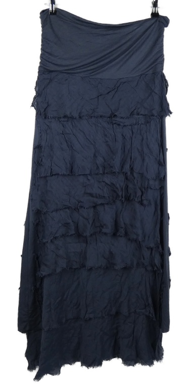 Dámské tmavomodré šaty bez ramínek s volánky