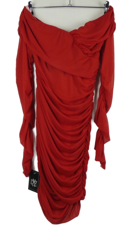 Nové - Dámské červené tylové řasené šaty Dressmezee