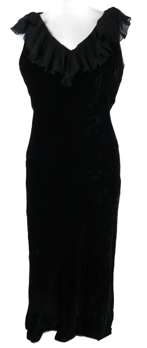 Dámské černé sametové midi šaty s volánky Hobbs