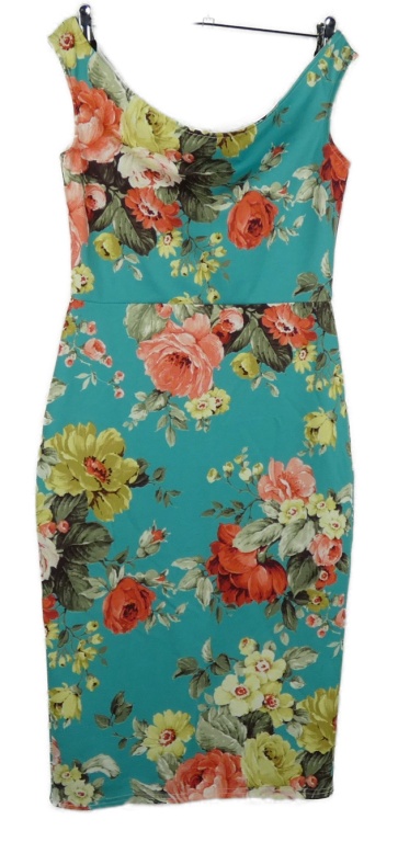Dámské tyrkysové květované pouzdrové šaty