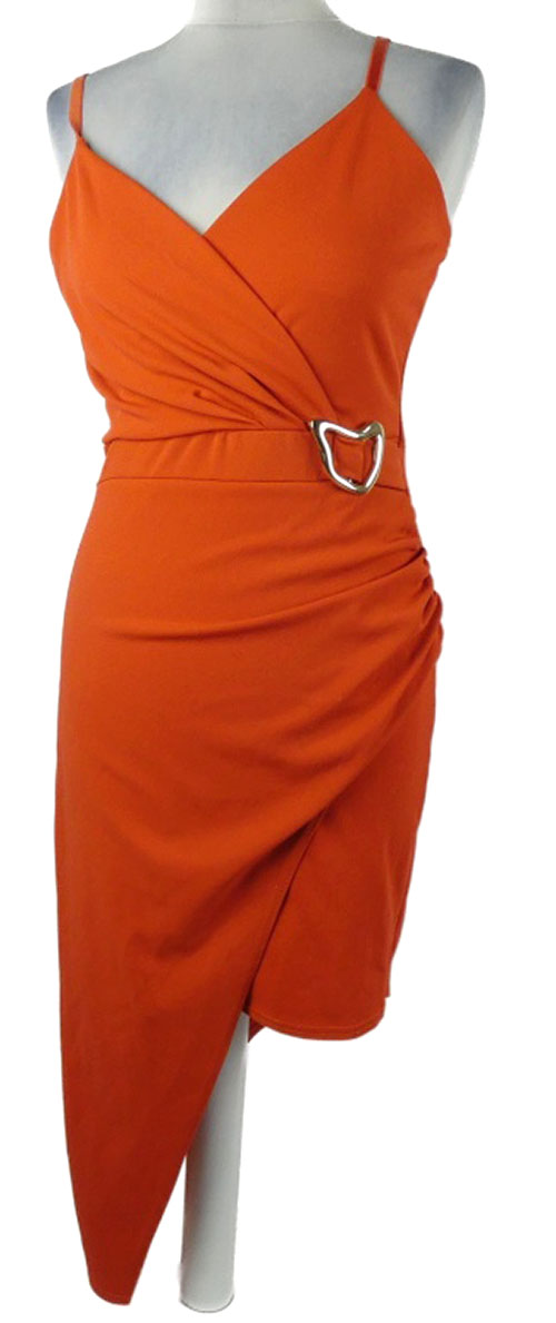 Nové - Dámské cihlově červené asymetrické šaty se sponou AX