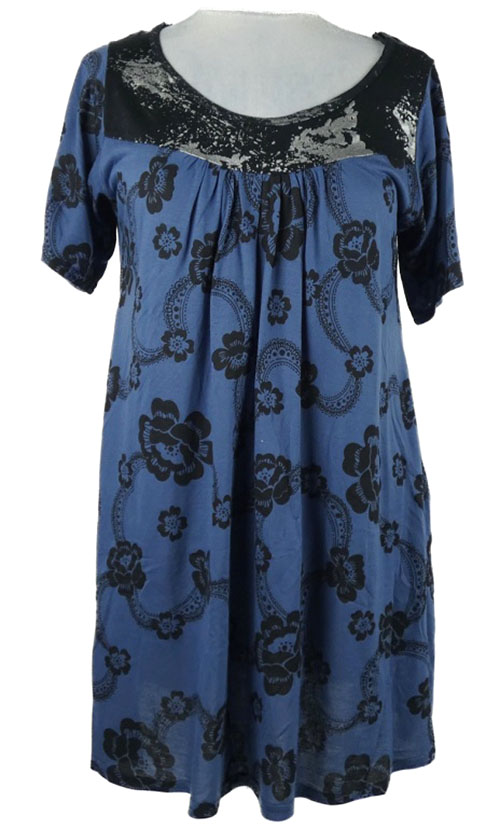 Dámské tmavomodro-černé květované šaty