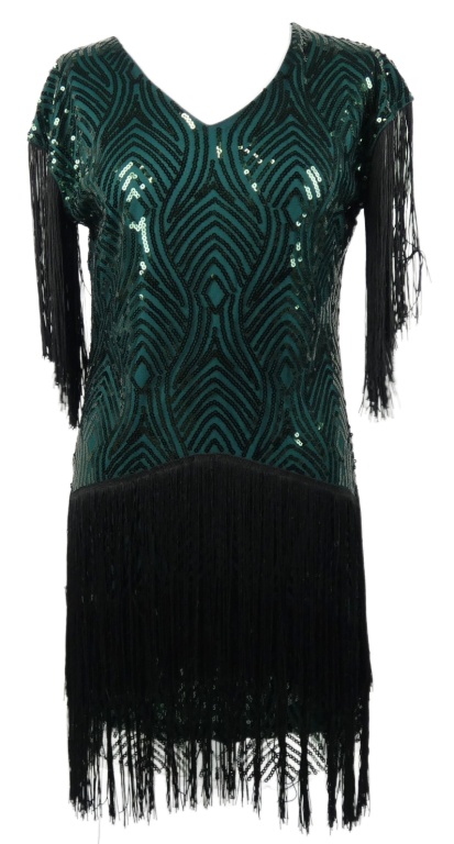 Dámské tmavozeleno-černé flitrové šaty s třásněmi