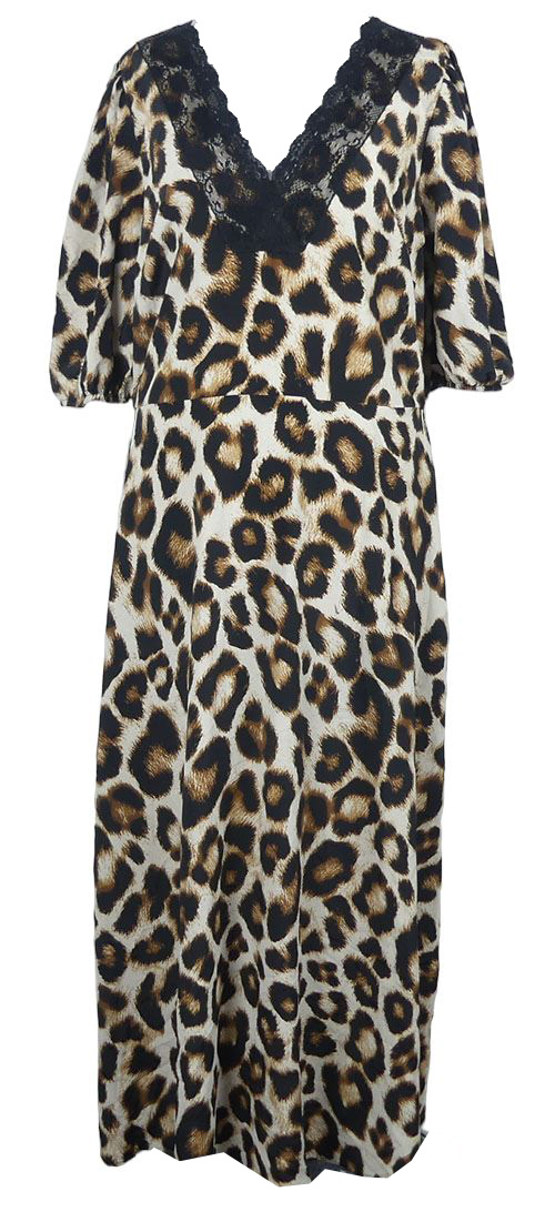 Dámské černo-hnědé vzorované midi šaty s krajkou F&F