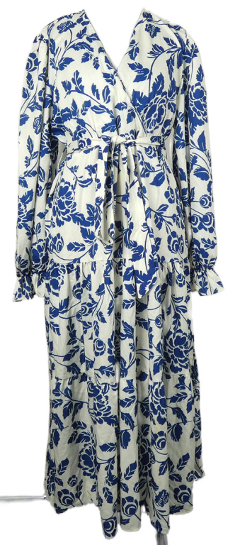 Dámské smetanovo-tmavomodré květované midi šaty s páskem Shein