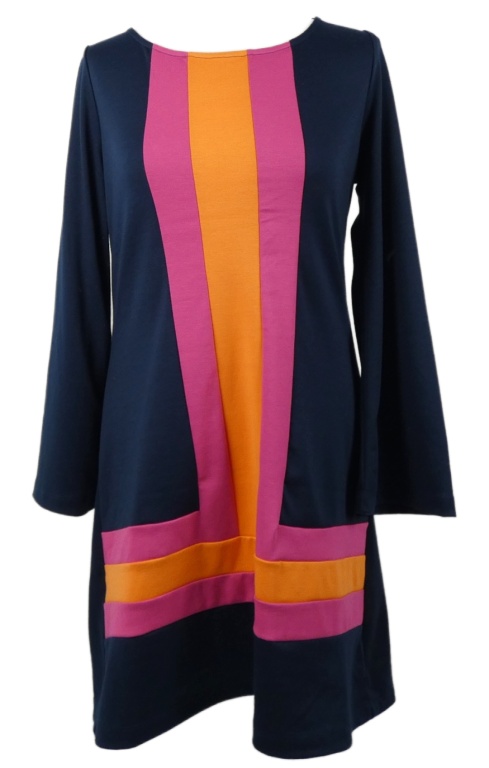 Dámské tmavorůžovo-oranžové pruhované šaty