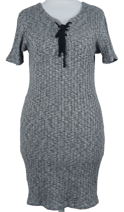 Dámské šedé melírované pletené šaty se šněrováním Select