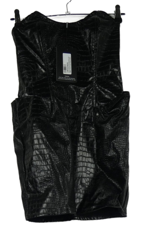 Nové - Dámské černé koženkové vzorované minišaty PrettyLittle Thing