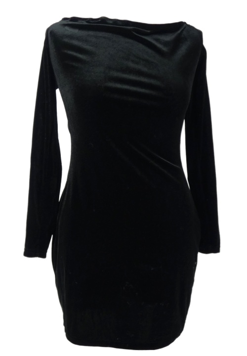 Dámské černé sametové šaty s lodičkovým výstřihem Shein