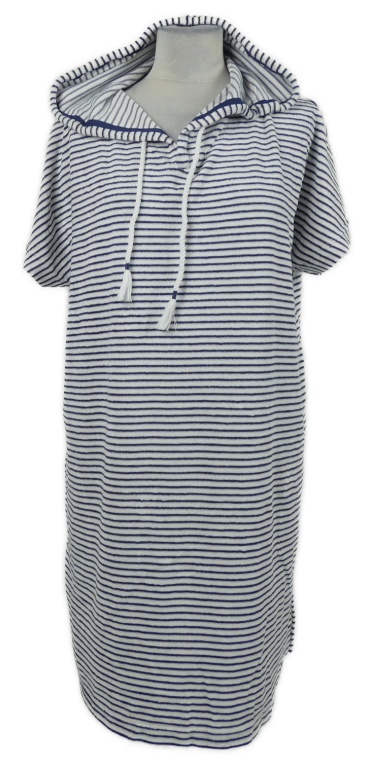 Dámské tmavomodro-bílé pruhované froté šaty s kapucí Tchibo
