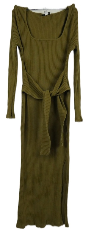 Dámské khaki žebrované midi šaty s páskem Topshop