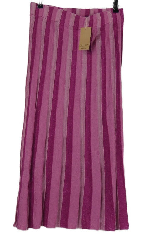 Nové - Dámská růžovo-tmavorůžová pruhovaná svetrová plisovaná midi sukně Dunnes