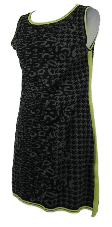 Dámské černo-šedé vzorované svetrové šaty s limetkovými pruhy Comma