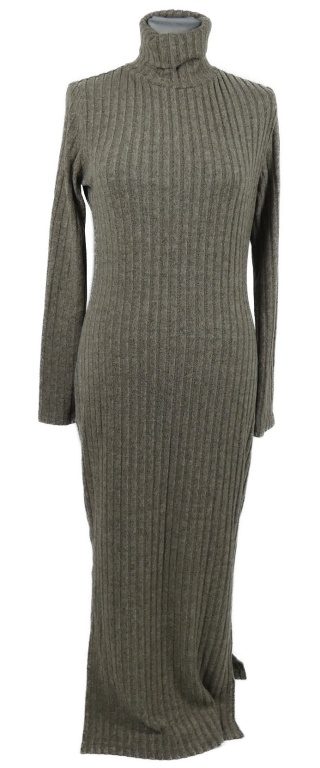 Dámské béžové žebrované svetrové šaty s rolákem