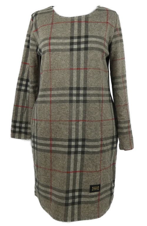 Dámské béžovo-šedo-červené kostkované šaty Fashion