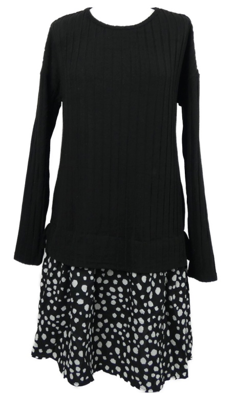 Dámské černé žebrované šaty s puntíkovanou sukní