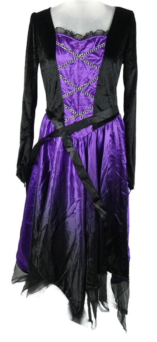 Kostým - Dámské černo-fialové sametovo/saténové šaty s páskem