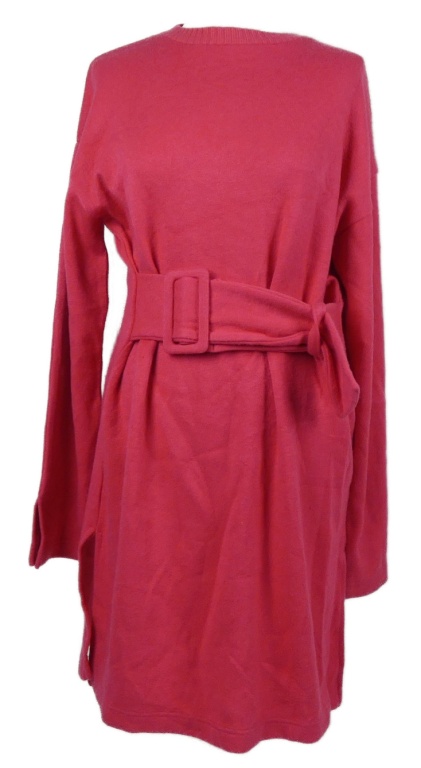 Dámské fuchsiové svetrové šaty s páskem