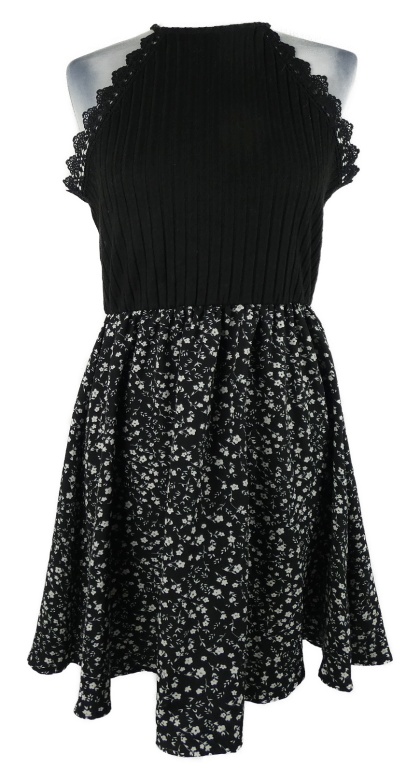 Dámské černé žebrované šaty s kytičkovanou sukní a krajkou Shein
