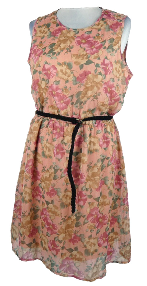 Dámské růžové kytičkované žoržetové šaty s páskem Only
