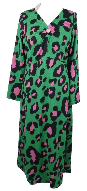 Nové - Dámské zeleno-růžovo-černé vzorované midi šaty TU