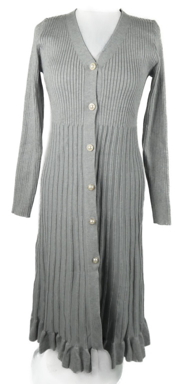 Dámské šedé žebrované pletené propínací šaty Shein