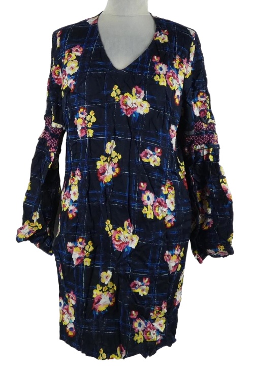 Dámské tmavomodré kostkované šaty s kytičkami TU