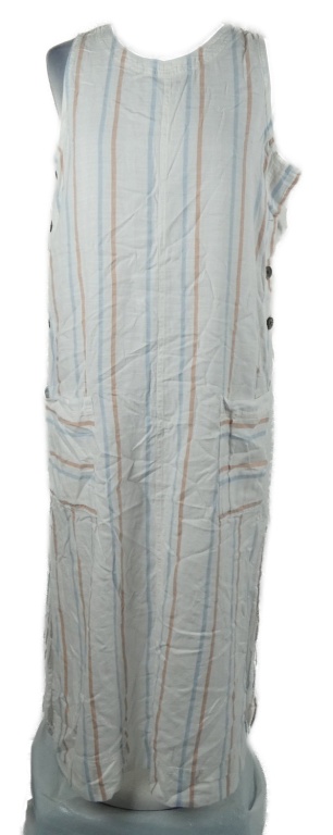 Dámské bílo-modro-oranžové pruhované lněné midi šaty M&S