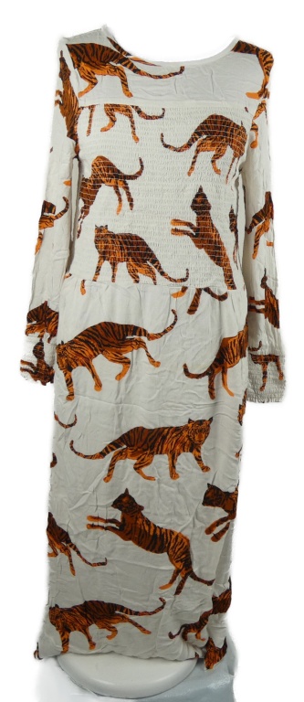 Dámské smetanové žabičkové midi šaty s tygry Next