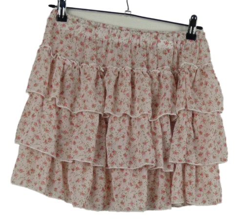 Dámská světlerůžová kytičkovaná šifonová sukně s volánky