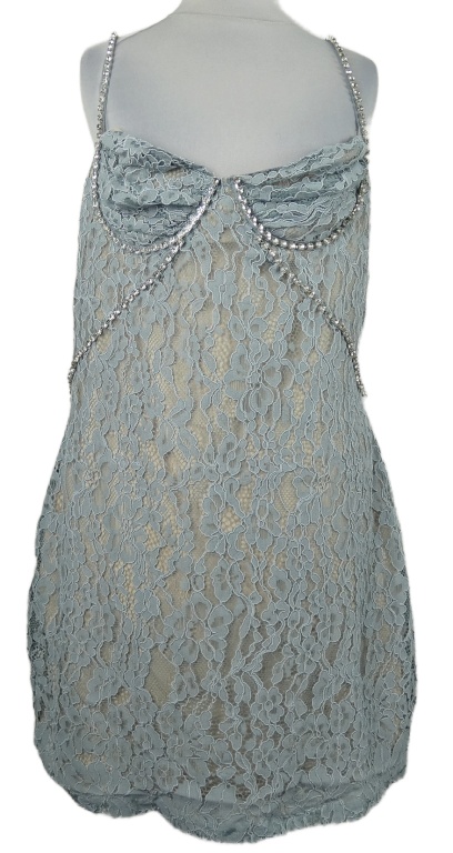 Dámské šedé krajkové šaty s kamínky Boohoo