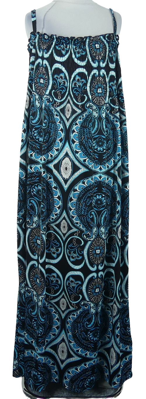 Dámské černo-modré vzorované žabičkové dlouhé šaty