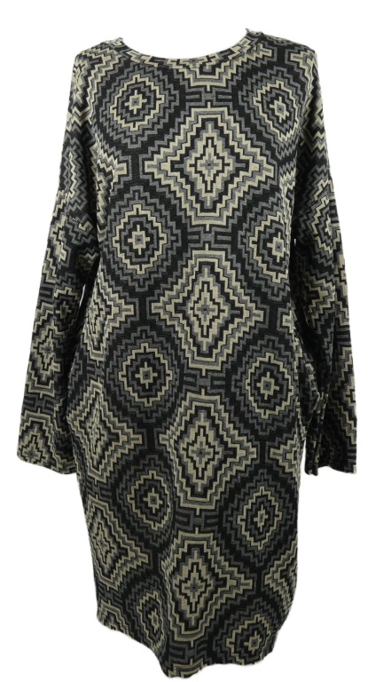 Dámské černo-šedo-béžové vzorované pletené šaty