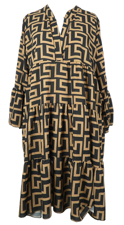 Dámské béžovo-černé vzorované šaty