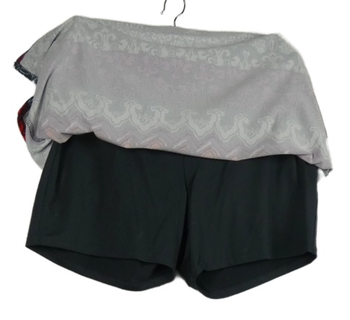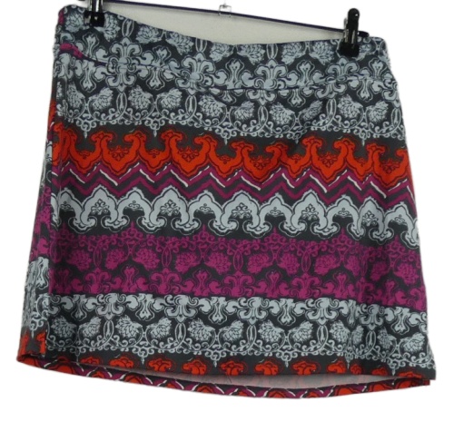 Dámská šedo-růžovo-červená vzorovaná sukně se všitými kraťasy