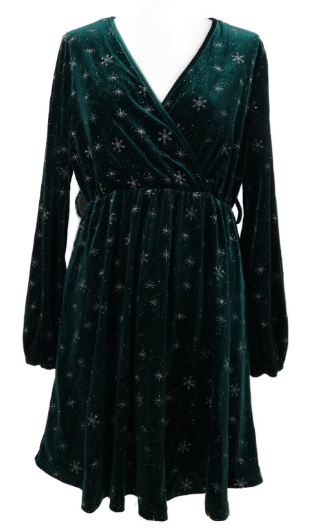 Dámské tmavozelené sametové šaty s vločkami Shein