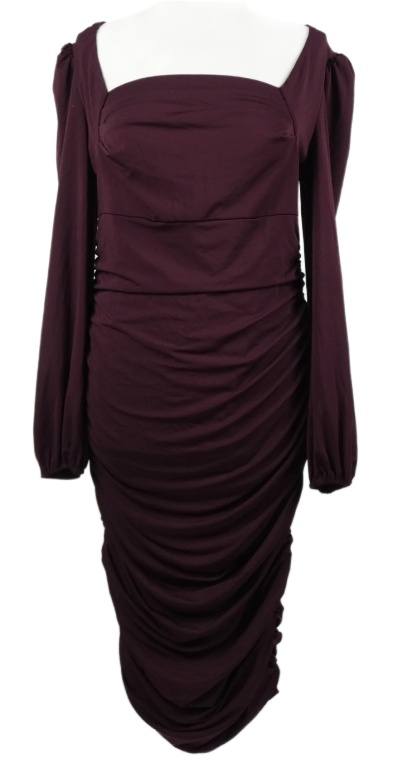 Dámské vínové řasené midi společenské šaty AX