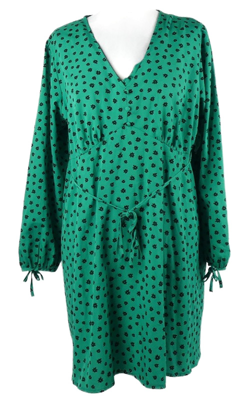Dámské zelené kytičkované šaty s provázkem v pase New Look
