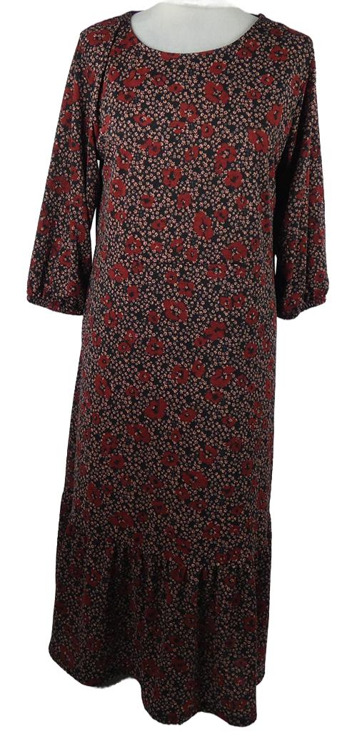 Dámské karmínovo-tmavomodré vzorované květované midi šaty TU