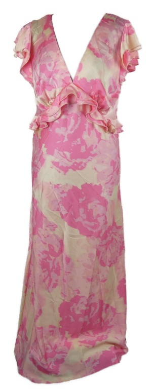 Nové - Dámské neonově růžové květované dlouhé saténové šaty s volánky New Look