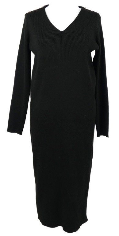Dámské černé svetrové žebrované dlouhé šaty s gombíky Et Vous