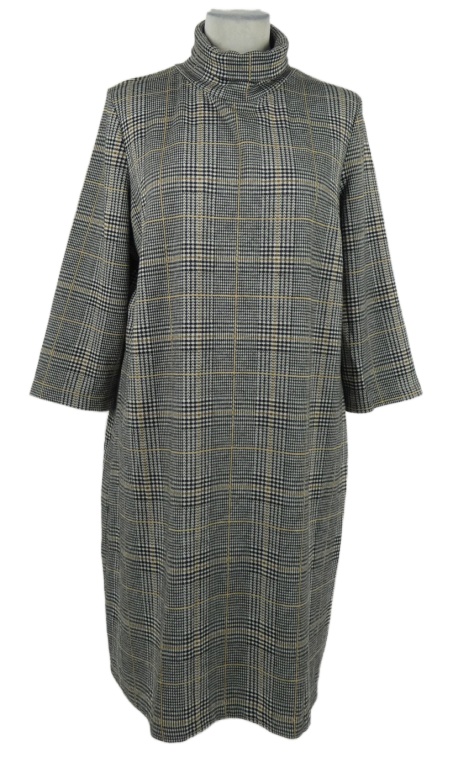 Dámské černo-bílo-béžové kostkované šaty s komínovým límcem Gallery