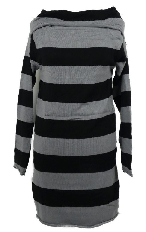 Dámské šedo-černé pruhované svetrové šaty s komínovým límcem