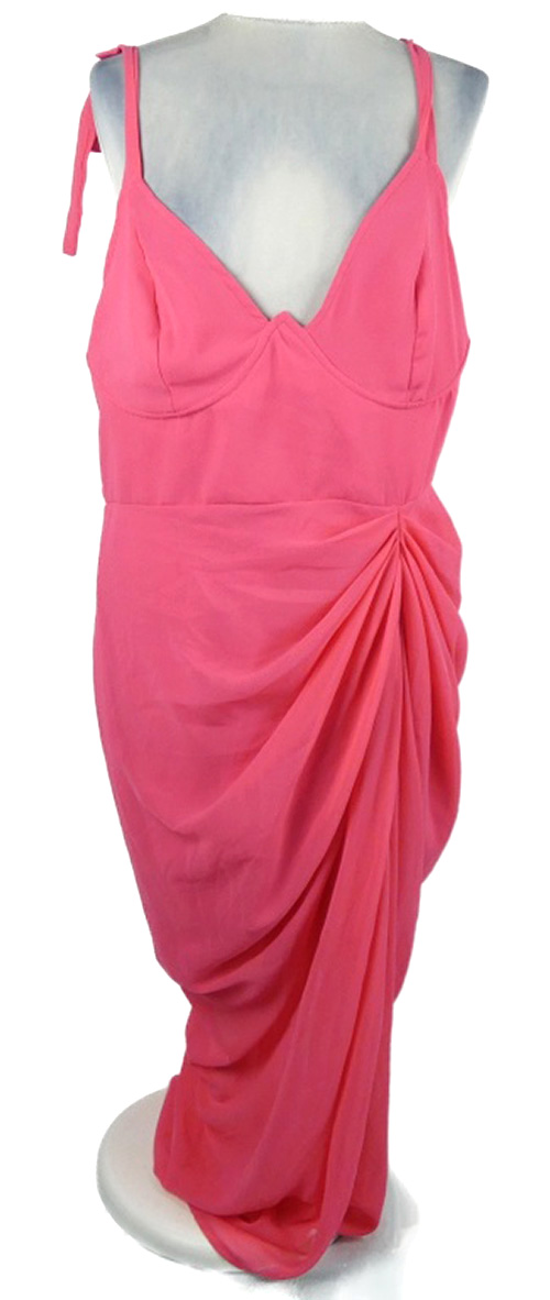 Nové - Dámské fuchsiové šifonové dlouhé šaty s řasením PrettyLittle Thing