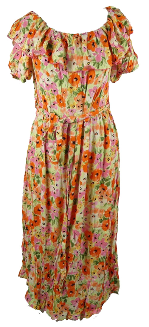 Dámské barevné kytičkované midi šaty s volánem a páskem F&F