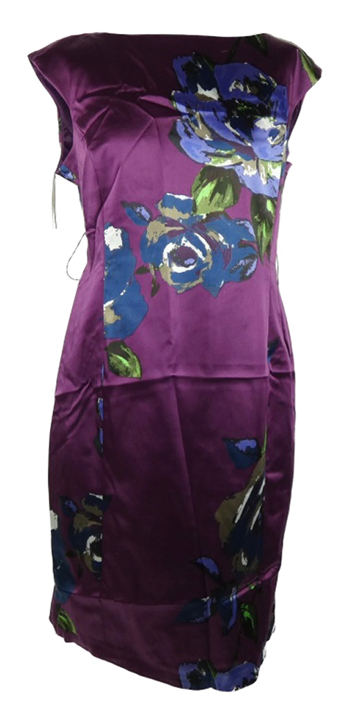 Nové - Dámské purpurové květované saténové pouzdrové šaty Coast