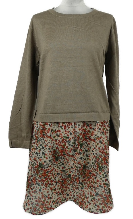 Dámské béžové svetrovo/šifonové šaty s květinovým vzorem