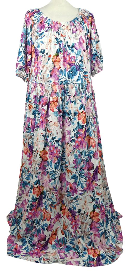 Dámské barevné květované dlouhé šaty s lodičkovým výstřihem Big Love vel. 54