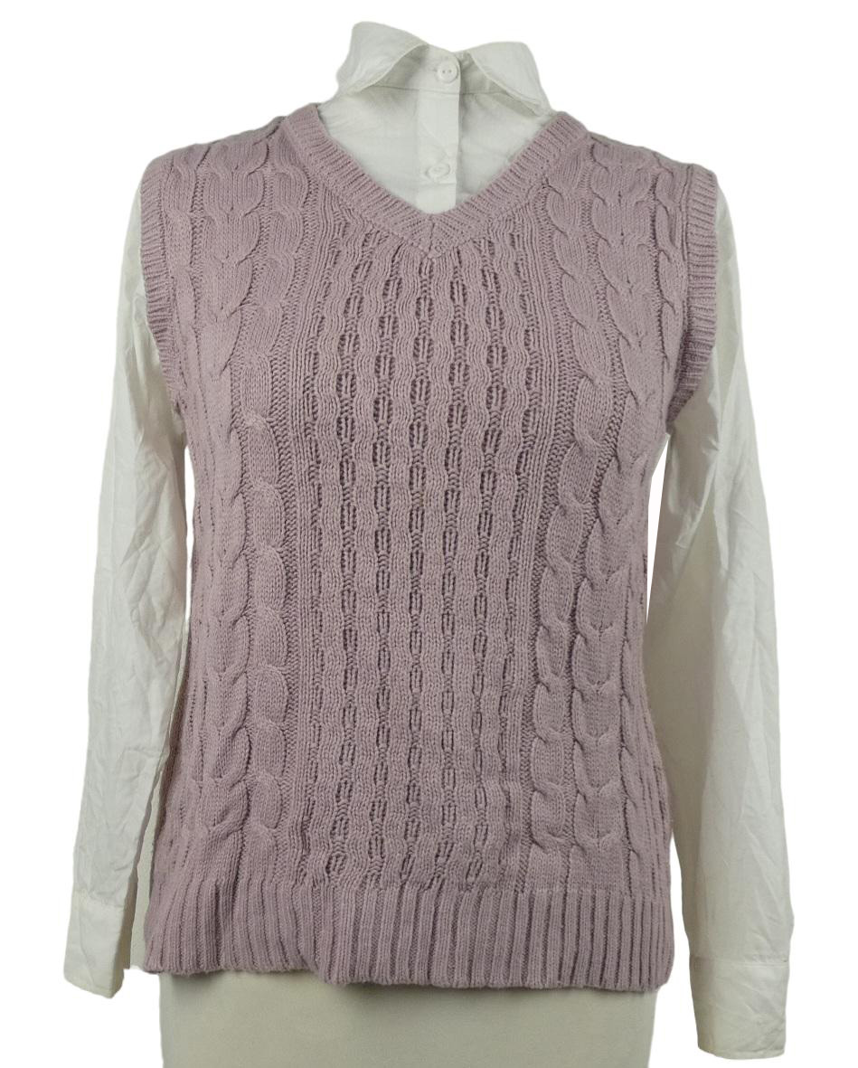 Dámská růžová vzorovaná svetrová vesta s bílou halenkovou vsadkou Max